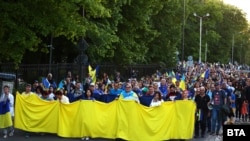 Той е сред хилядите хора, които в понеделник вечерта участваха в шествие под наслов "Поход срещу руския фашизъм" в София. То започна от президентството, премина покрай сградата на Министерството на вътрешните работи (МВР), Българското национално радио (БНР)и завърши пред посолството на Русия.