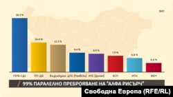 Резултати от паралелно преброяване на „Алфа рисърч“/БНТ на 99%: