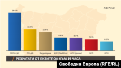 Резултати от екзитпола на „Алфа рисърч“/БНТ към 19 часа:
