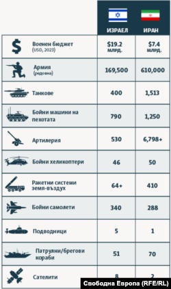 Радио Фарда, иранската служба на Радио Свободна Европа, потърси отговор на този въпрос от военни експерти. Според тях, в случай на пряк конфликт, Израел ще има военно превъзходство, както в отбрана, така и в нападение. Те обаче предупреждават, че заплахата от дронове и ракети на Иран не трябва да се подценява.