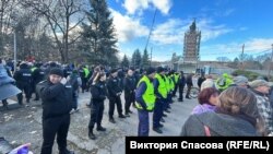 Полицията раздели двете групи и каза, че ще охранява денонощно пространството около паметника.