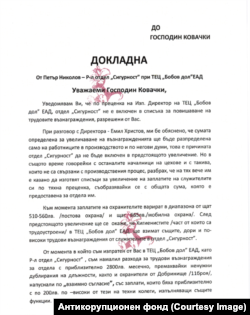 Въпреки това то се появява в някои документи, които АКФ публикува. Пример е доклад от ръководителя на отдел „Сигурност” на ТЕЦ „Бобов дол”, който е адресиран до „господин Ковачки”. Писмен отговор липсва, но върху документа има печат с анимационен герой и надпис на ръка „одобрено”.